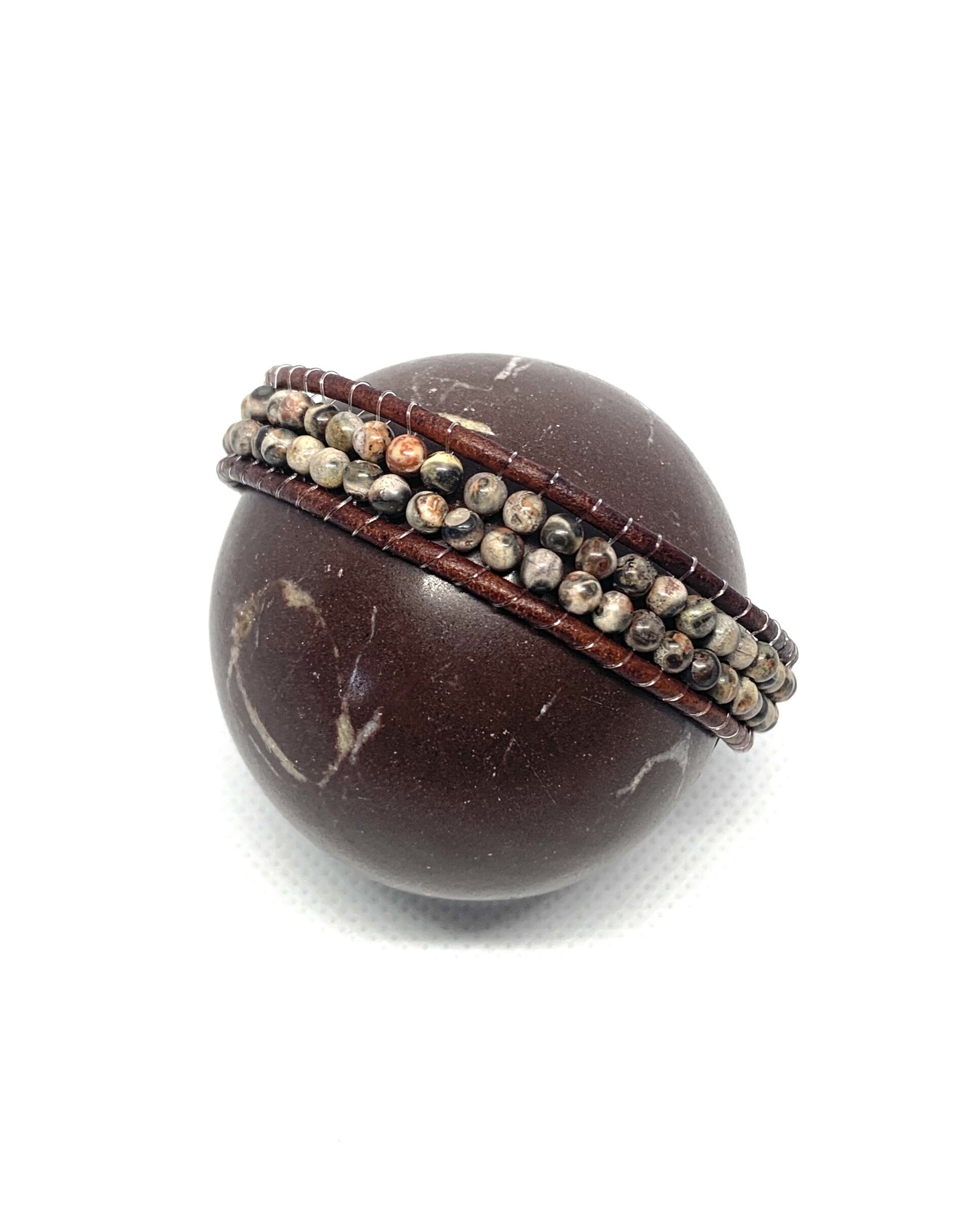 This Rhodonite bracelet is finished with a bronze designed button