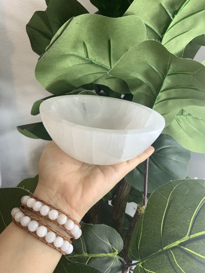 Selenite is one of those stones everyone should have in their crystal kit. It is my go to Crystal to cleanse and recharge my other crystals and jewelry with my Satin Spar bowl. Selenite is a crystal that never needs cleansing or recharging itself because of its exceptionally high vibration. It has the ability to quickly remove stagnant, stuck energy from any room. Use it as a protective grid around your house to create a safe and quiet space that does not allow outside influences in with our Satin Spar sticks, place on top of the front door